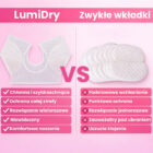 LumiDry daje bardziej stabilne i wygodne rozwiązanie, które lepiej układa się na ciele, nie wymaga codziennego wyrzucania i sprawdza się także pod dopasowanymi fasonami.
